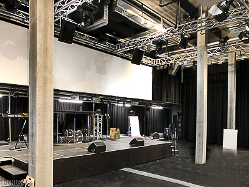 - Technikverkleidung (Traverse, Regie, Cases, Podest- und Bühnenfronten)